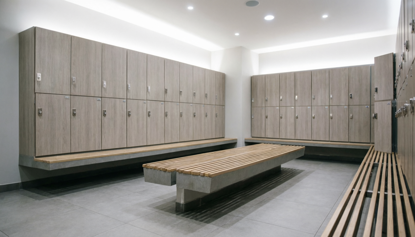 Раздевалки и душевые проектируются с расчетом на одновременное посещение 30–40% от общей вместимости клуба. В женской и мужской раздевалках должны быть предусмотрены отдельные зоны для переодевания, зеркала, скамейки и шкафчики. Душевые кабины размещаются с учетом минимальной ширины прохода 1,2 метра между ними.