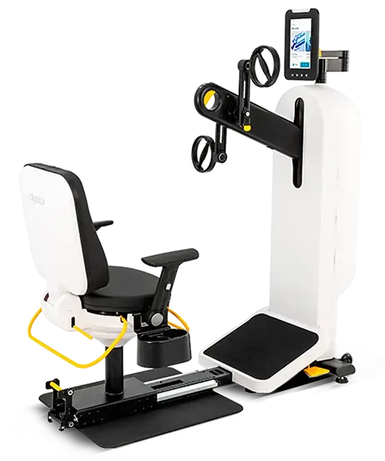 Поворотный механизм позволяет перемещать панель консоли на 360 градусов для легкого доступа к данным тренировки для терапевта. Световой "маячок" в верхней части консоли помогает терапевту ориентироваться на состояние пользователя во время тренировки, даже во время работы с несколькими пациентами одновременно.