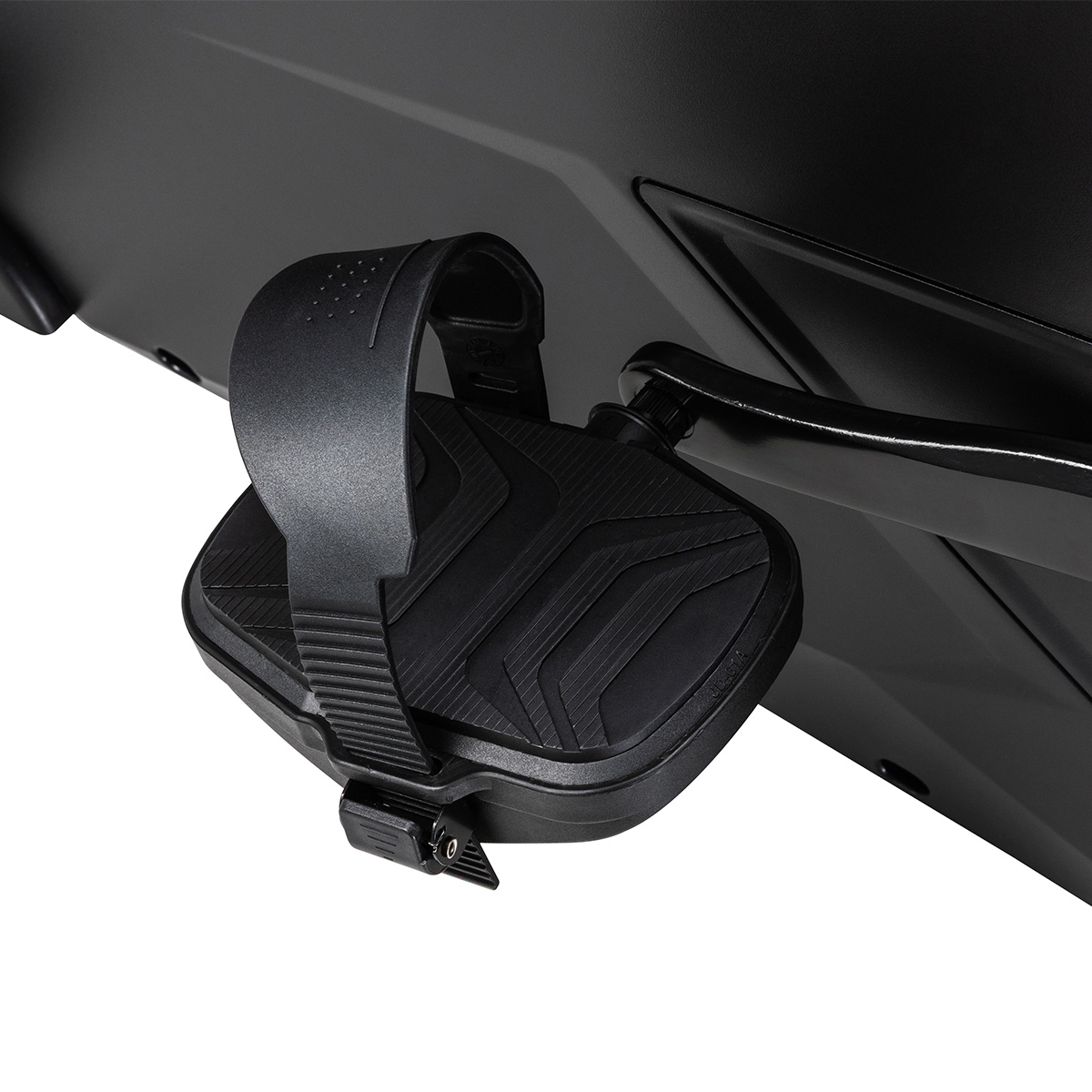 Педали имеют внутренний угол наклона 2 градуса, такое положение снижает нагрузку на ноги, обеспечивая максимальное удобство. Восьмижильный широкий поликлиновый ремень и качественные подшипники, создают совершенную плавность хода.