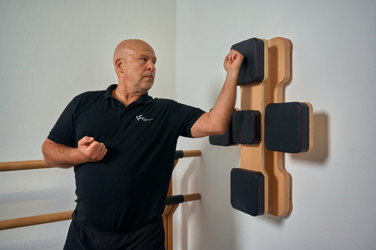 Макивара выполнена из тщательно отобранных материалов: массив дуба, натуральной воловьей кожи титанового дубления и высоко конструкционной стали.