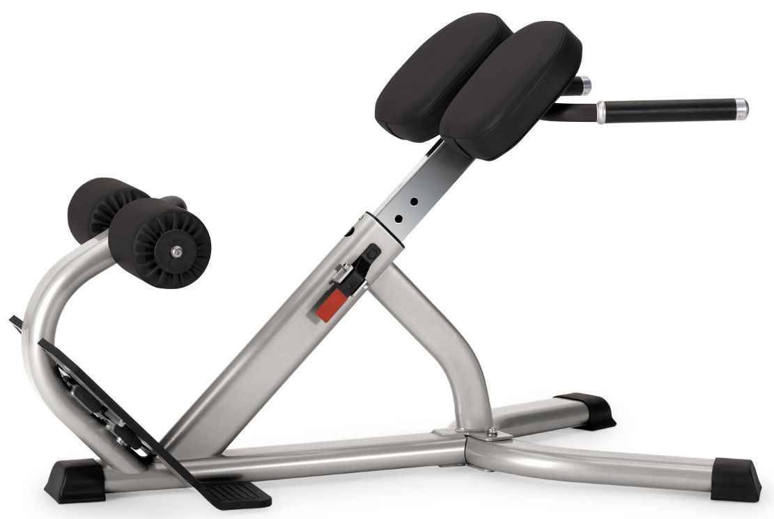 Угол наклона скамьи в 45° обеспечивает целевую направленность на тренировку спины, а обрезиненные рукоятки служат для стабилизации положения тела во время выполнения упражнения.