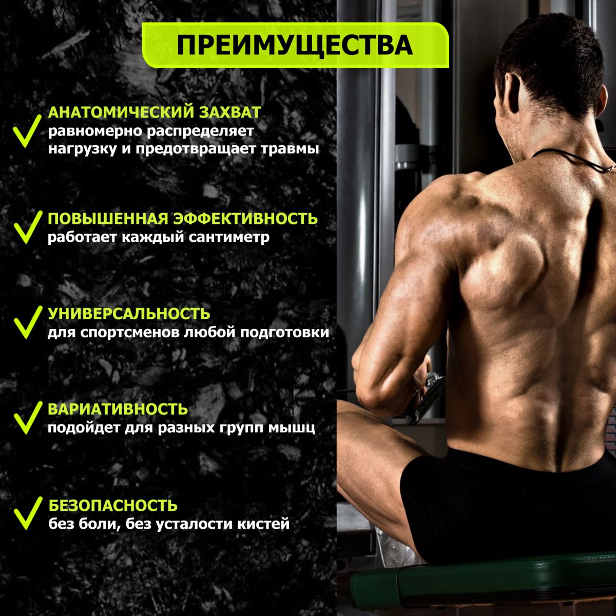 помогает точно воздействовать на бицепс и трицепс.