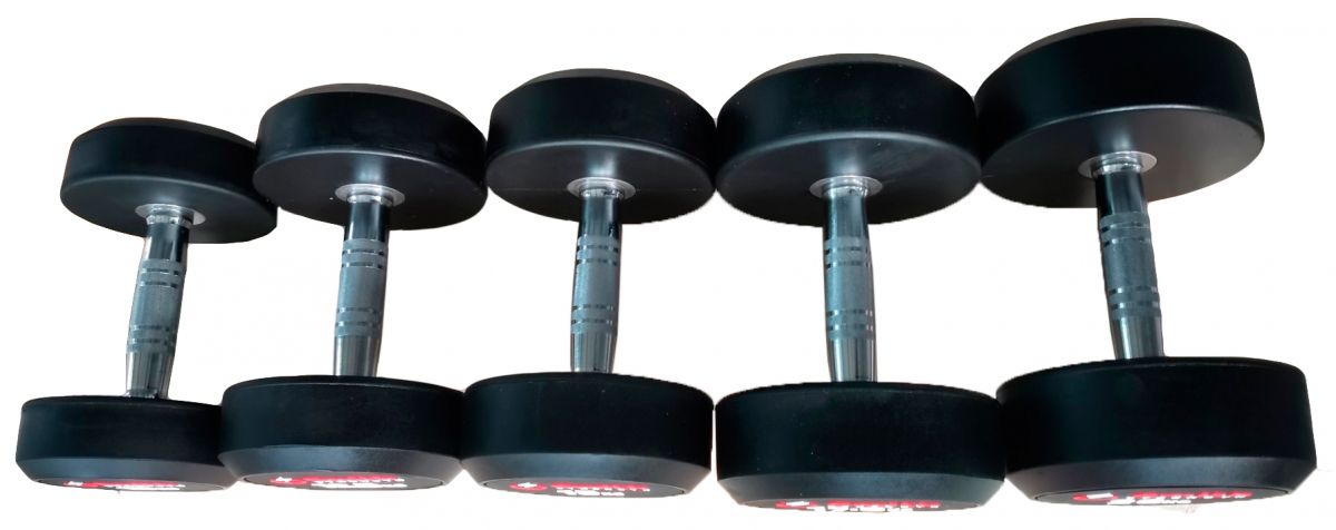 Smith Strength DB145 - это классический ряд надежных обрезиненных гантелей высокого качества, состоящий из 20-ти полиуретановых гантелей весом от 2,5 до 25 кг, с шагом 2,5 кг. Общий вес набора 275 кг. Качественное резиновое покрытие не имеет запаха и обладает высокой износостойкостью. Изогнутые эргономичные рукоятки оснащены насечками для комфортного хвата и устранения проскальзывания гантели. Наглядная цветная маркировка веса на торцах для быстрой и удобной идентификации.